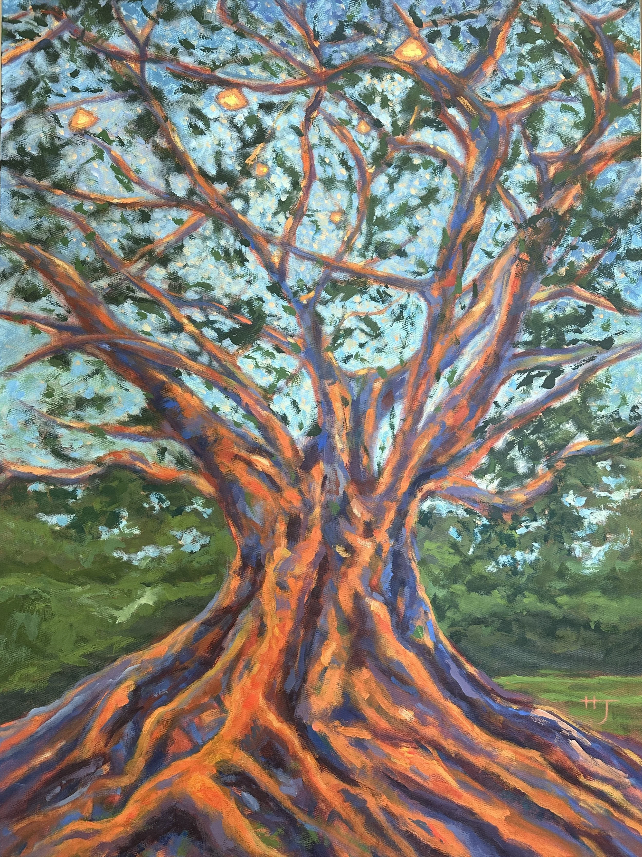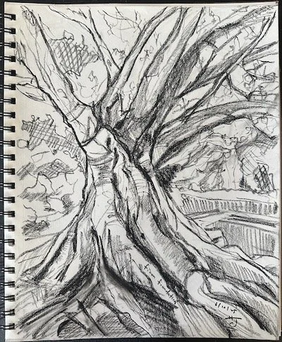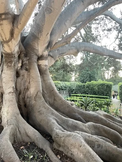 In May, I went to a candlelight concert at the Santa Barbara Music Academy of the West. My eyes were drawn to a mysterious ancient tree in the garden that looked hundreds of years old. Its strong roots, like the talons of an eagle, were firmly dug into the earth, and its countless branches reached up to the sky as if extending its arms. It reminded me of Psalm 62.