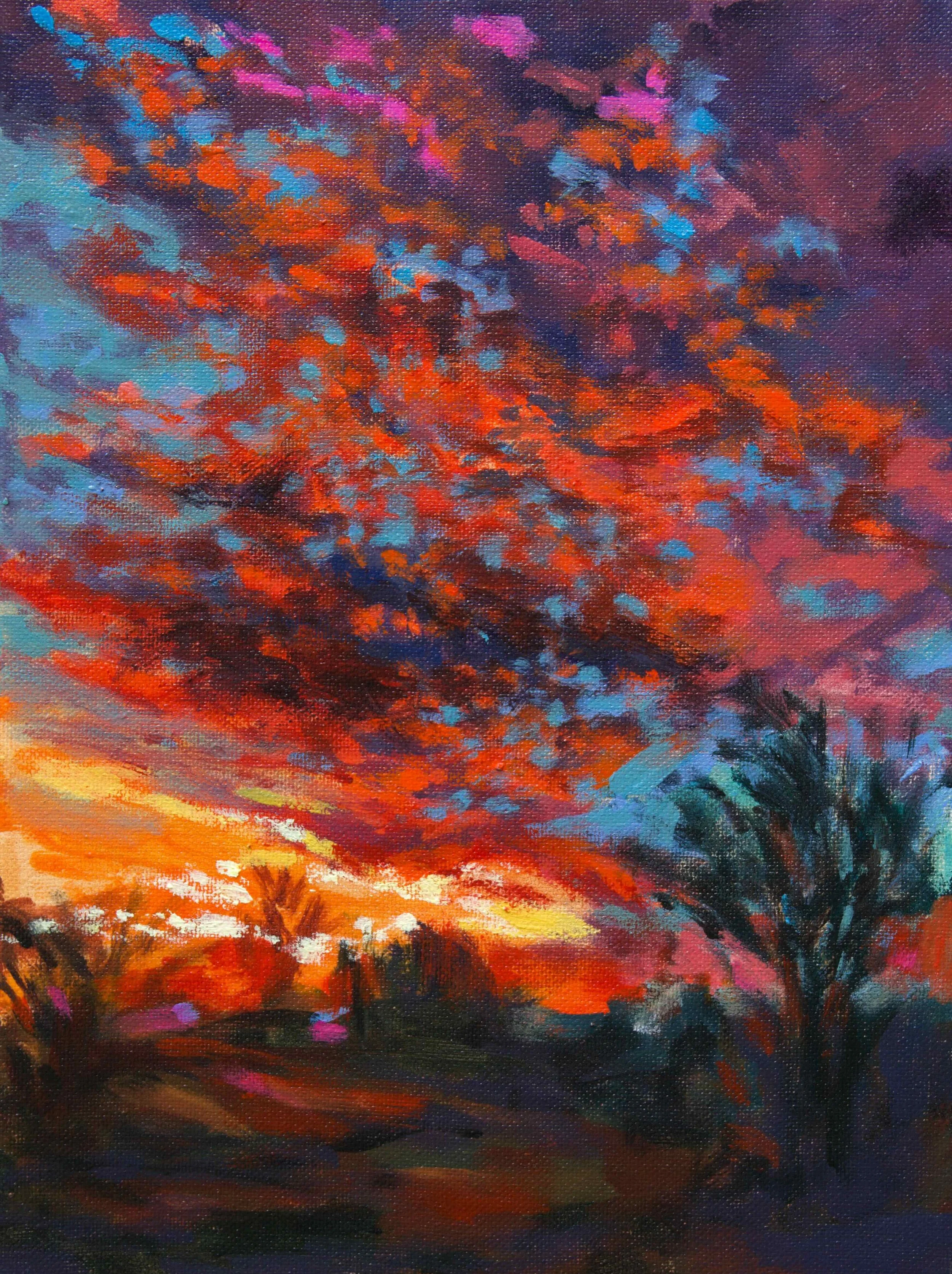 While my sky series isn't strictly a realistic landscape, I strive for the colors to be as accurate as possible. I believe that even when other artistic elements are omitted, color alone can touch and resonate with the human heart and soul.